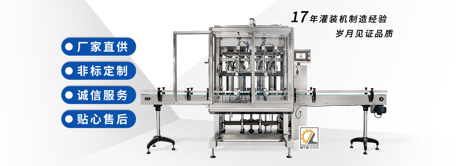 邁特威自動(dòng)化設(shè)備(天津)有限公司坐落于素有京津明珠之稱(chēng)的天津·武清區(qū),是國(guó)家高新技術(shù)企業(yè),專(zhuān)注生產(chǎn)、研發(fā)、銷(xiāo)售全自動(dòng)灌裝機(jī)、旋蓋機(jī)、封口機(jī)、貼標(biāo)機(jī)等系列產(chǎn)品,立足京津冀、服務(wù)全國(guó),遠(yuǎn)銷(xiāo)海內(nèi)外,團(tuán)隊(duì)由行業(yè)高技術(shù)人士組成,為國(guó)內(nèi)外食品、日化、糧油、醫(yī)藥等企業(yè)提供滿(mǎn)意的包裝解決方案。 查看詳情